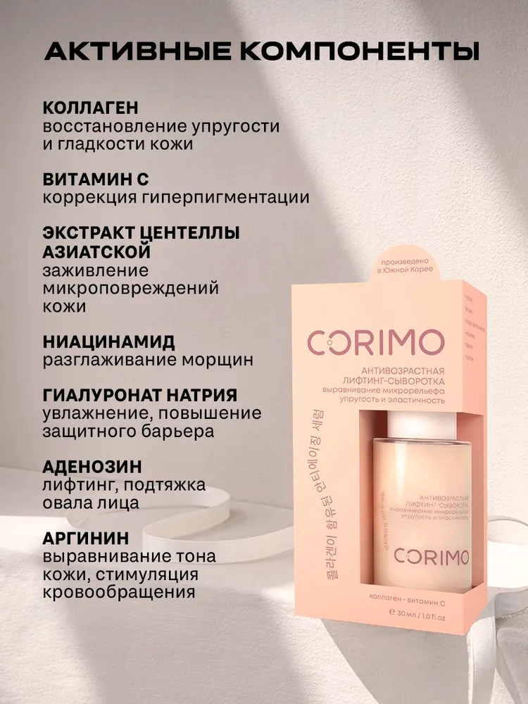 Corimo Антивозрастная лифтинг-сыворотка для кожи лица с коллагеном и витамином С 30 мл