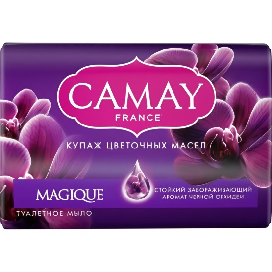 Этот чувственный, завораживающий аромат твердого мыла Camay Magique (Камей Магическое заклинание) собрал в себе нотки редкой черной орхидеи и насыщенные тона темных цветов.