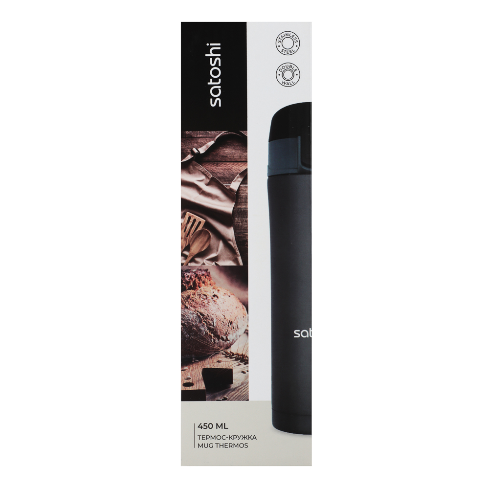 Кружка-термос SATOSHI объемом 450 мл с двойными стенками корпуса сохраняет напитки теплыми дольше обычного.