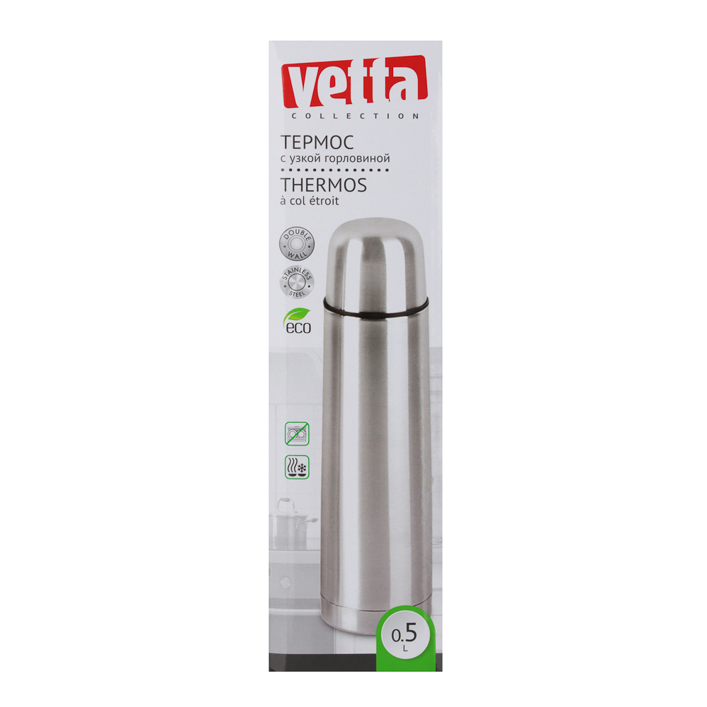 Термос VETTA Буллет объемом 0,5 л из нержавеющей стали для напитков станет практичным спутником во время отдыха на природе и в поездках.