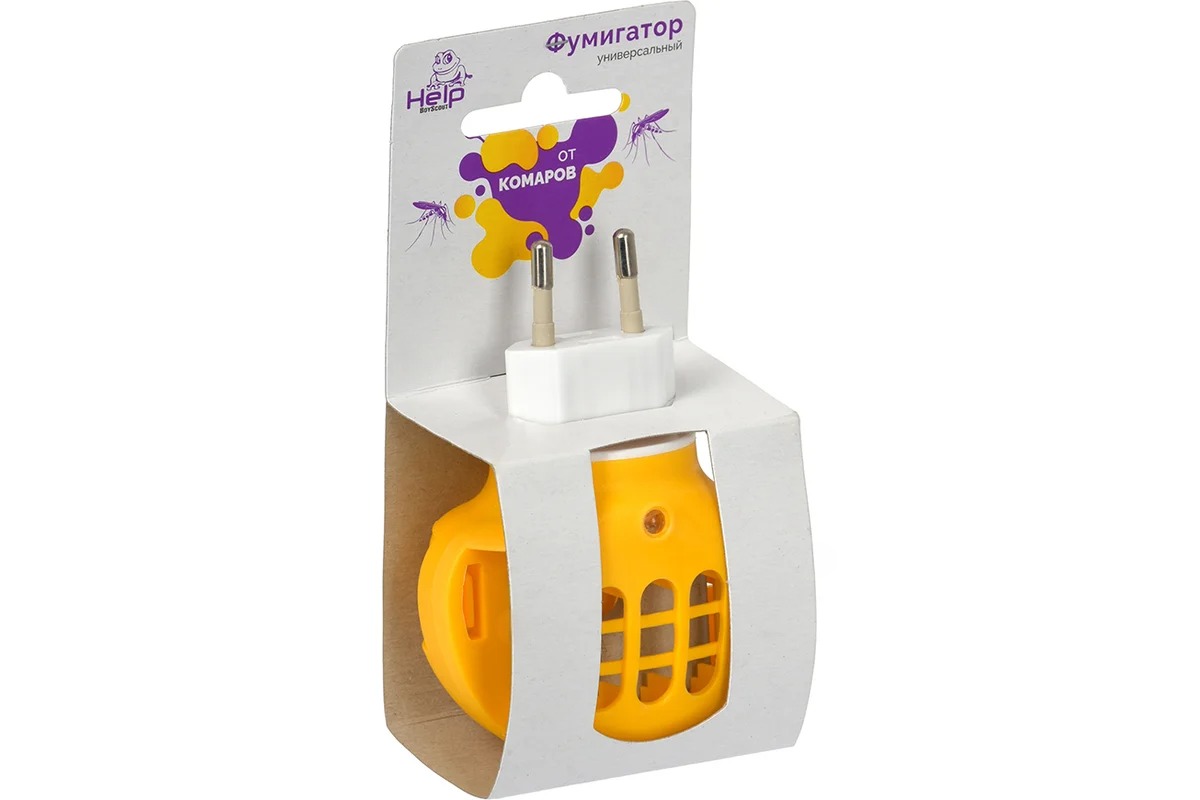 Универсальный фумигатор с индикатором HELP (Помощь) используется вместе с пластинами для защиты помещений от комаров и мошек.