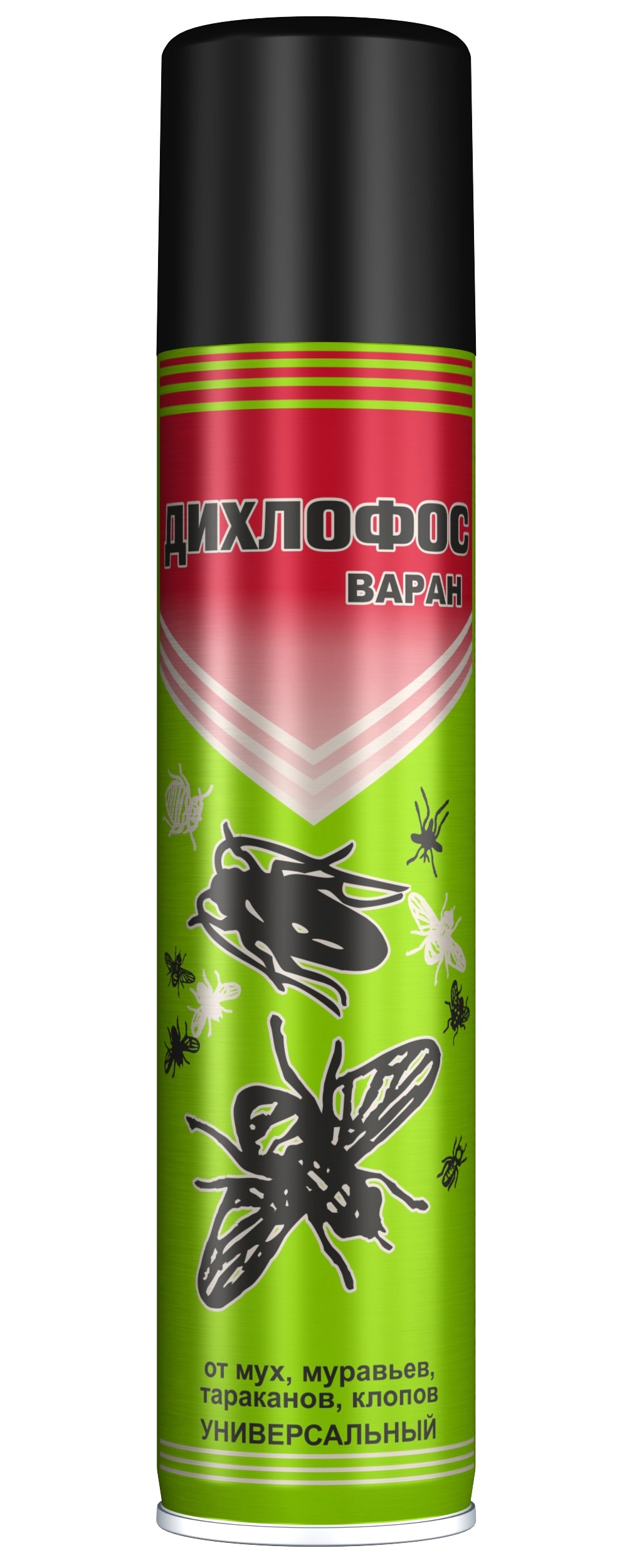 Варан Дихлофос Аэрозоль Универсальный Эконом - препарат для уничтожения летающих (мухи, комары, москиты, бабочки моли) и нелетающих (тараканы, клопы, блохи, муравьи, кожееды) насекомых в помещениях.