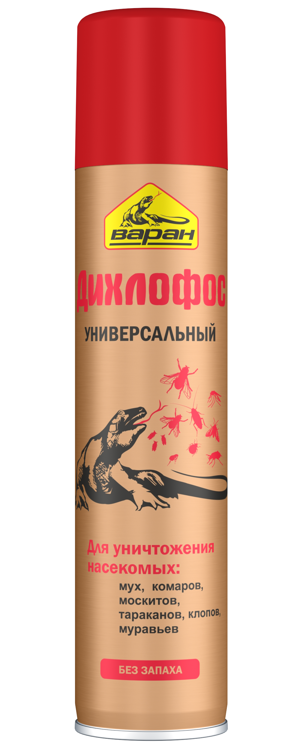 Дихлофос ВАРАН универсальный золотой без заппаха - это препарат без запаха универсального назначения с повышенным содержанием активного компонента, для уничтожения ползающих насекомых (тараканов, муравьёв, клопов и т.д.) и летающих насекомых (мух, бабочек, моли комаров), обладающий мгновенным и остаточным действием.