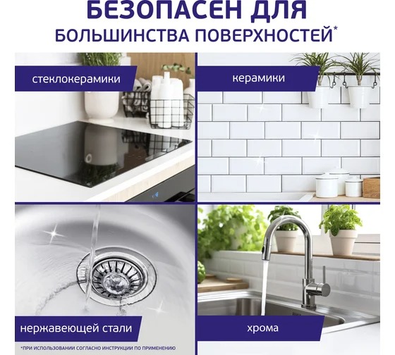 Для всех поверхностей, которые не соприкасаются с едой, смывание средства не требуется.
