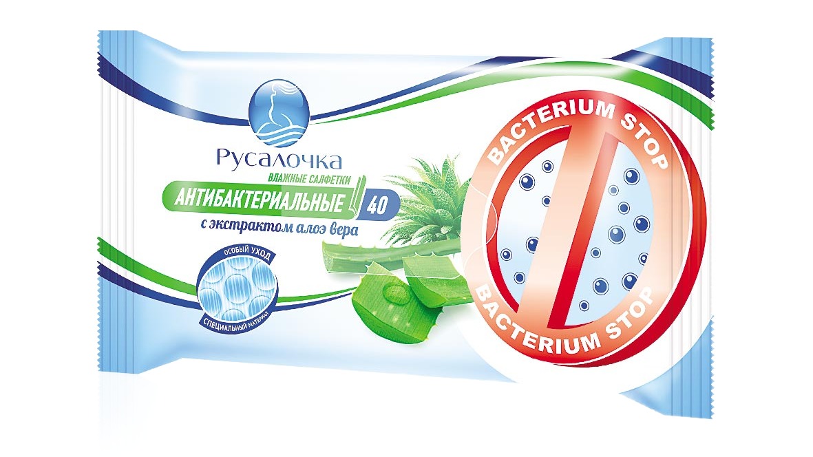 Русалочка салфетки освежающие антибактериальные с экстрактом алоэ 40шт