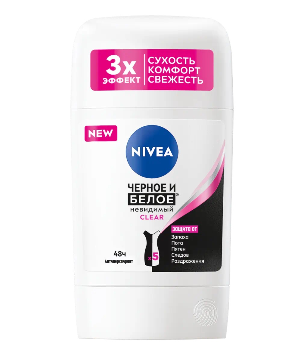 Дезодорант-антиперспирант стик "Чёрное и Белое Невидимый" обеспечивает защиту от запаха пота на 48 часов и уход без раздражения.