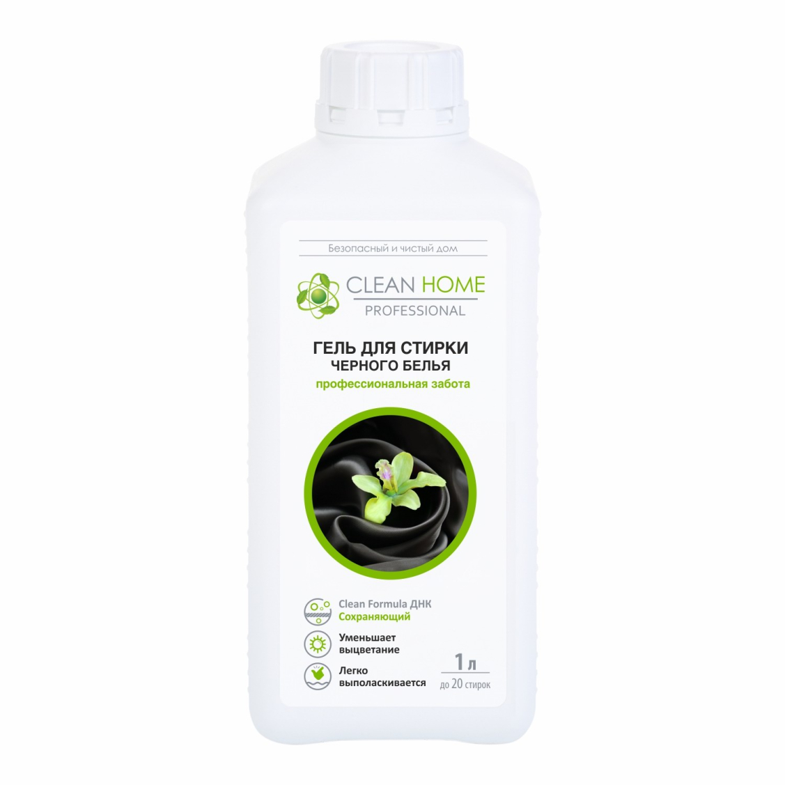 Гель для стирки черного белья Clean Home (Чистый дом) позволяет сохранить структуру ткани и препятствует вымыванию цвета с волокон ткани.