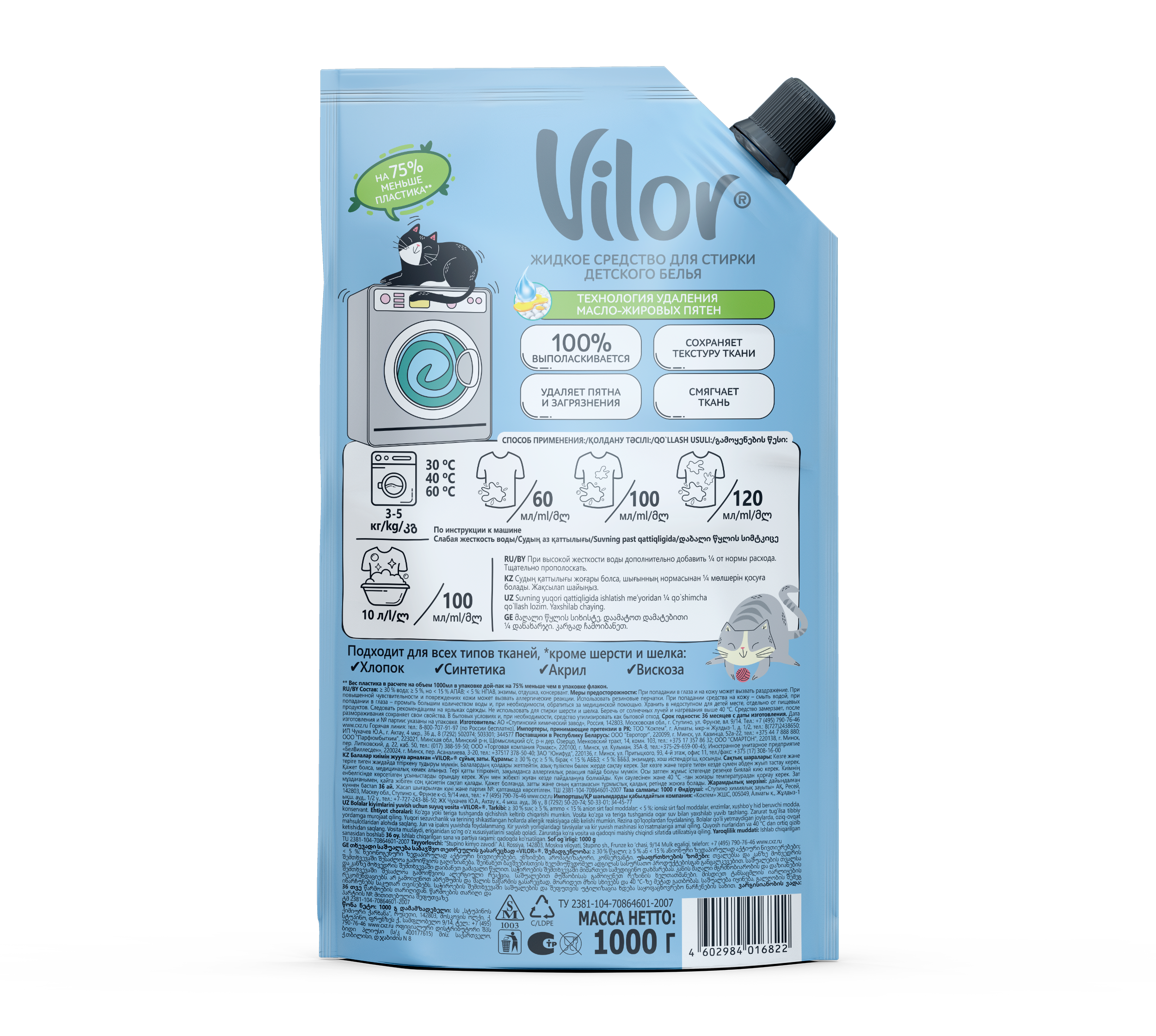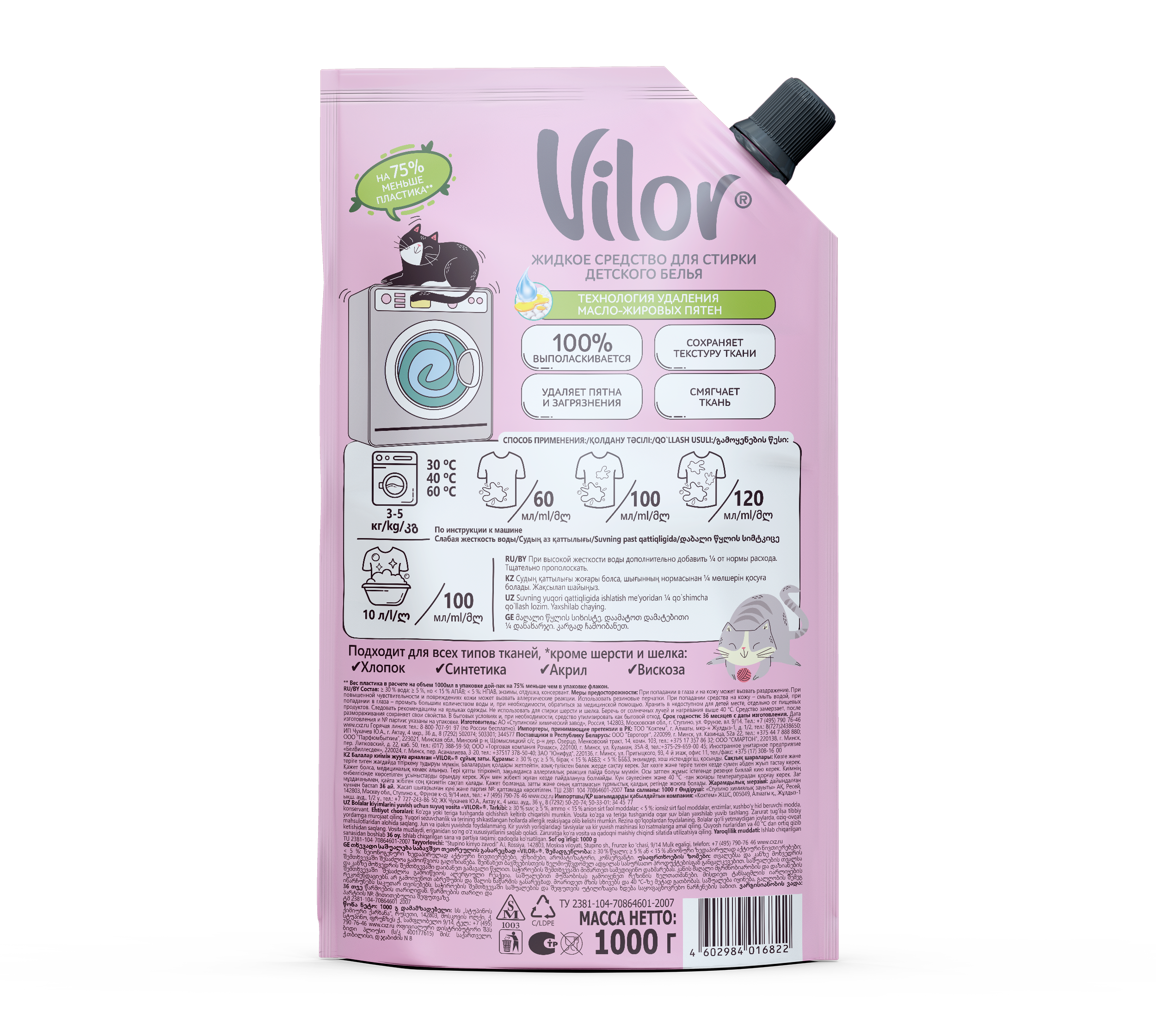 Жидкое средство для стирки детского белья"Vilor" (Вилор) подходит для деликатного ухода за детскими вещами.