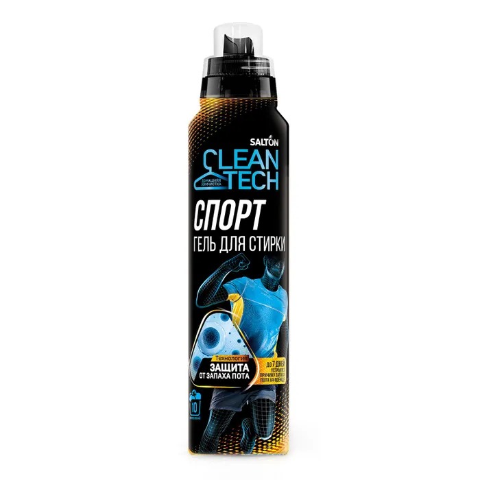 Гель для спортивной одежды Salton CleanTech (Солтон Чистая Технология) с функцией защиты от запаха пота - это уникальное и эффективное средство для стирки спортивной одежды и мембранных тканей, рабочих и повседневных вещей.