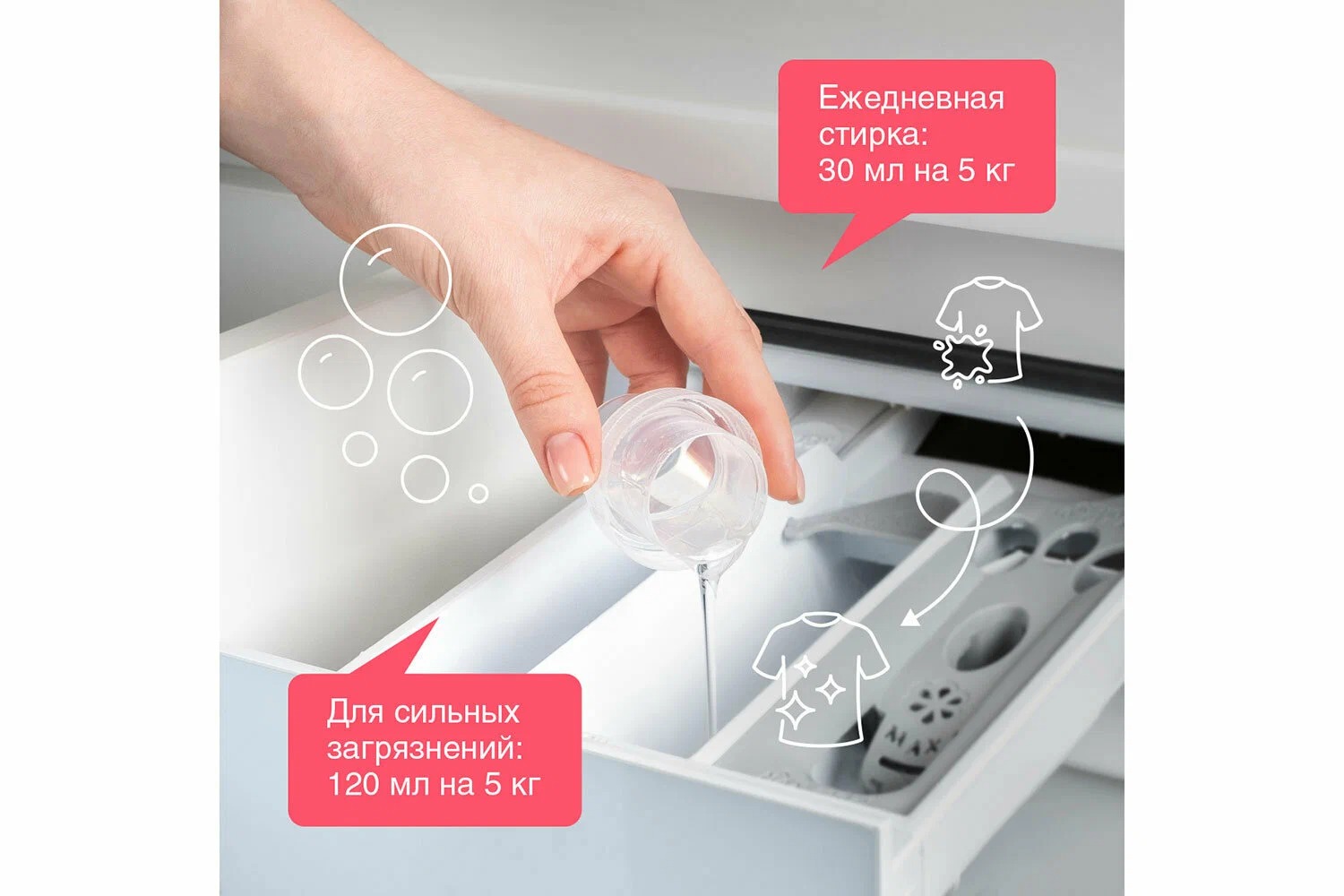 Способ применения: в зависимости от степени загрязнения используйте от 1 до 4 колпачков средства.