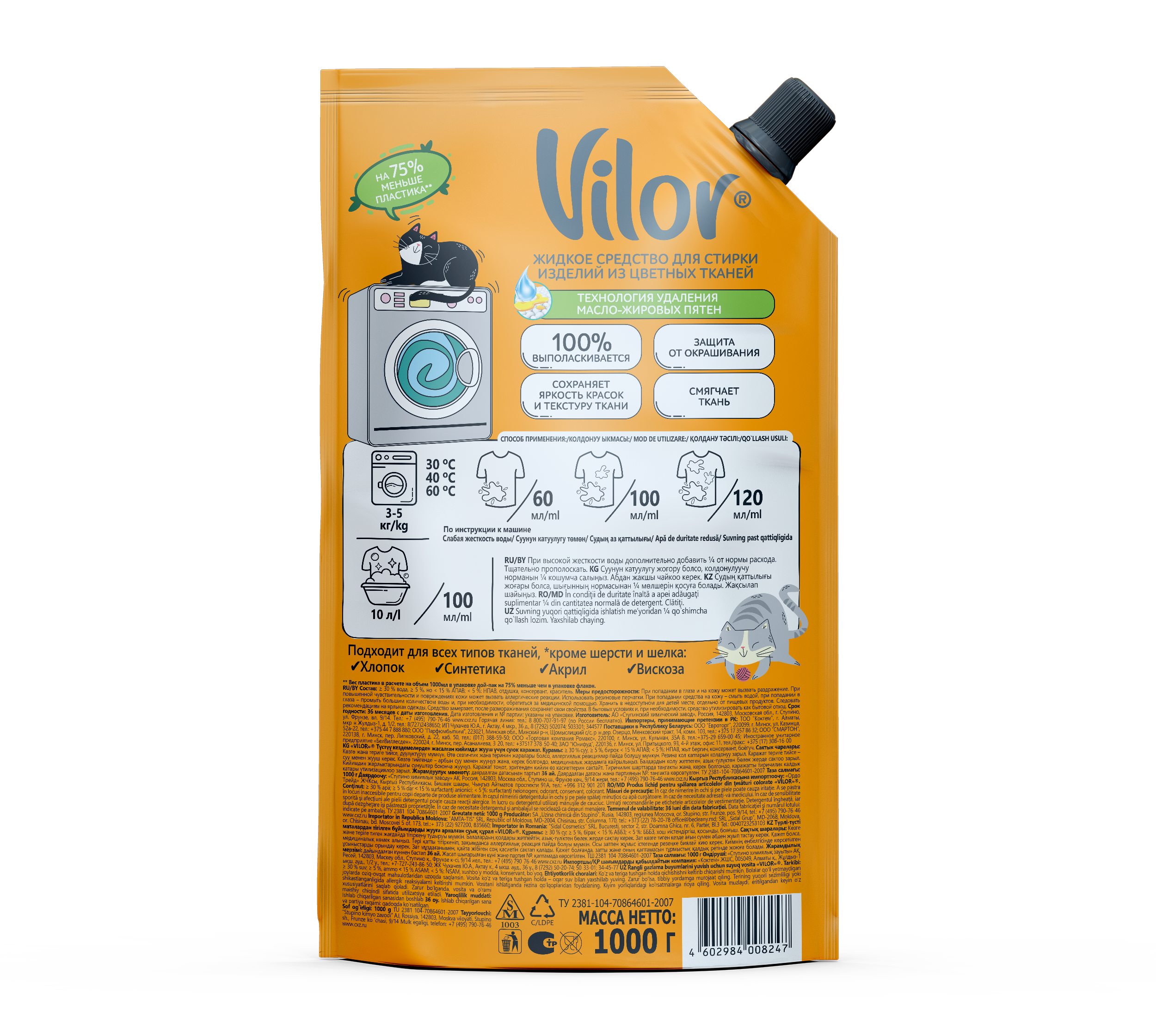 Универсальный гель для стирки белья "Vilor" (Вилор) идеально подходит для эффективной и бережной стирки цветных тканей.