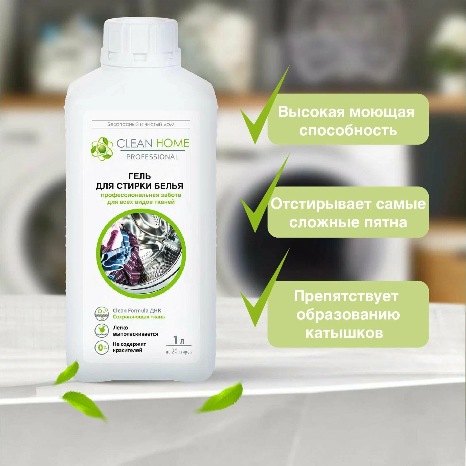Гель для стирки белья Clean Home(Чистый дом) - это деликатное средство для всех видов тканей, которое эффективно удаляет пятна и загрязнения, сохраняя структуру тканей.