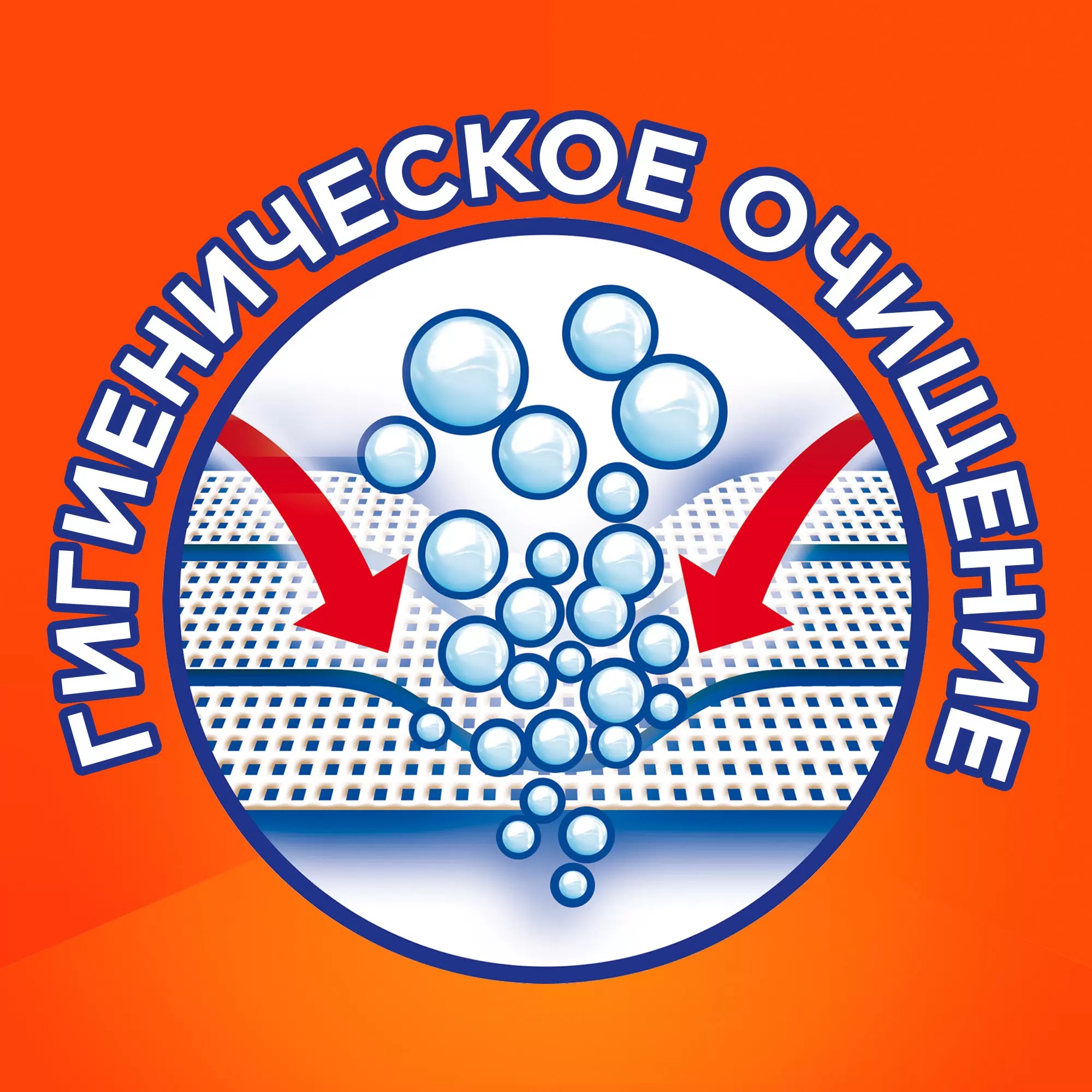 Благодаря этому активные вещества мгновенно вступают в контакт с водой, эффективно удаляя загрязнения даже на коротких циклах и в холодной воде, не оставляя после стирки следов.