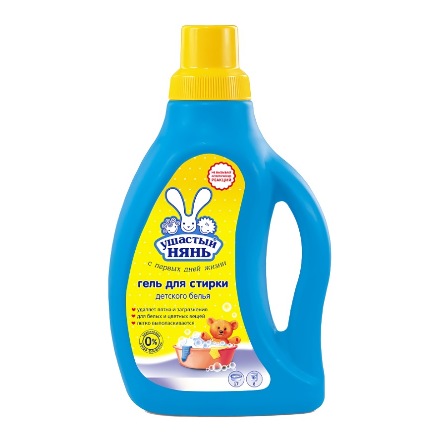 Жидкое средство "Ушастый нянь" предназначено для стирки детского белья, в том числе новорожденных.