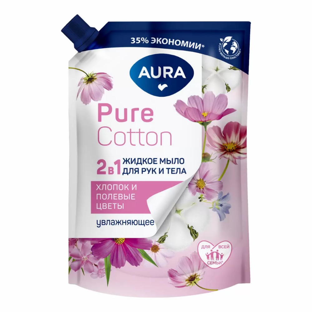 Aura жидкое мыло 2в1 Хлопок и полевые цветы 450мл дой-пак
