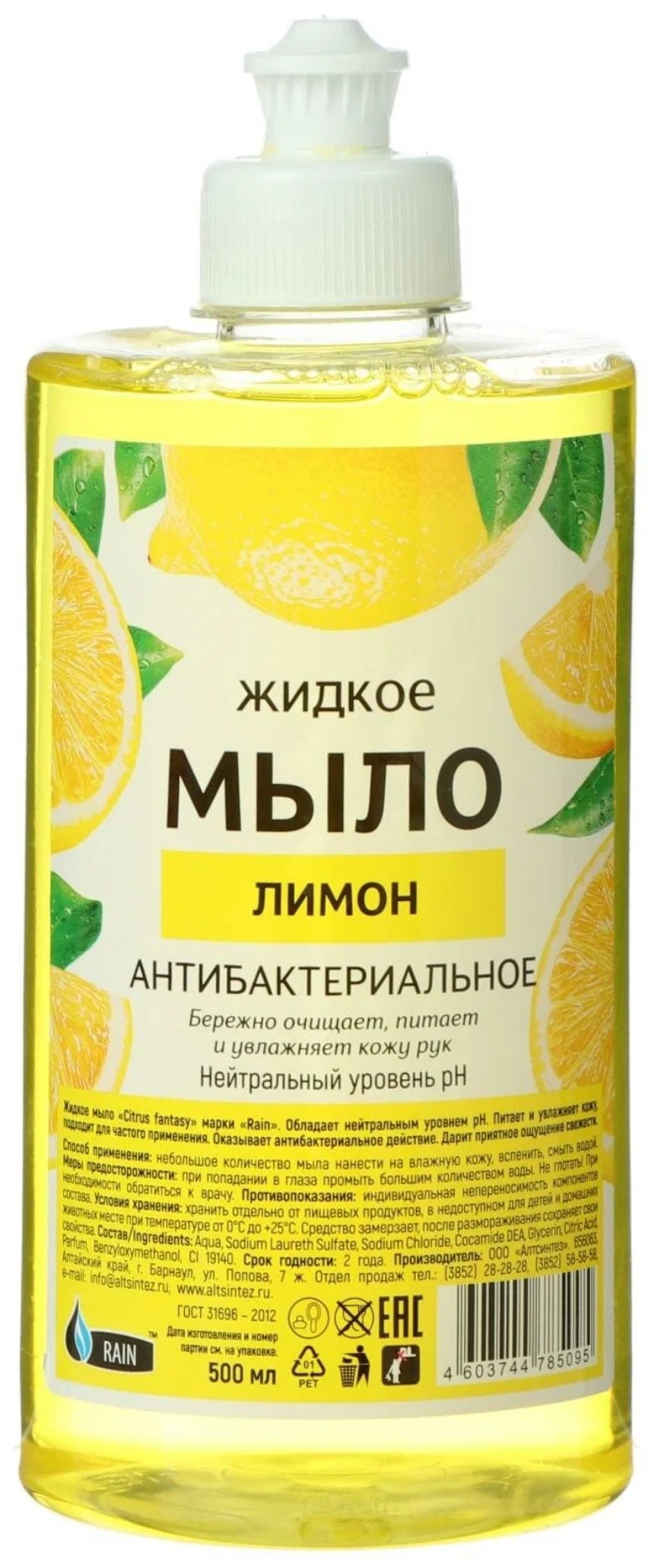 RAIN Standart Мыло жидкое антибактериальное Лимон 500мл пуш-пул