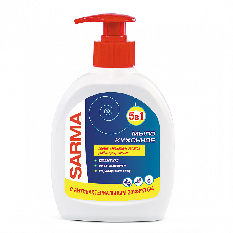 Жидкое мыло для кухни "Сарма" предназначено для мытья рук после приготовления пищи или мытья посуды.