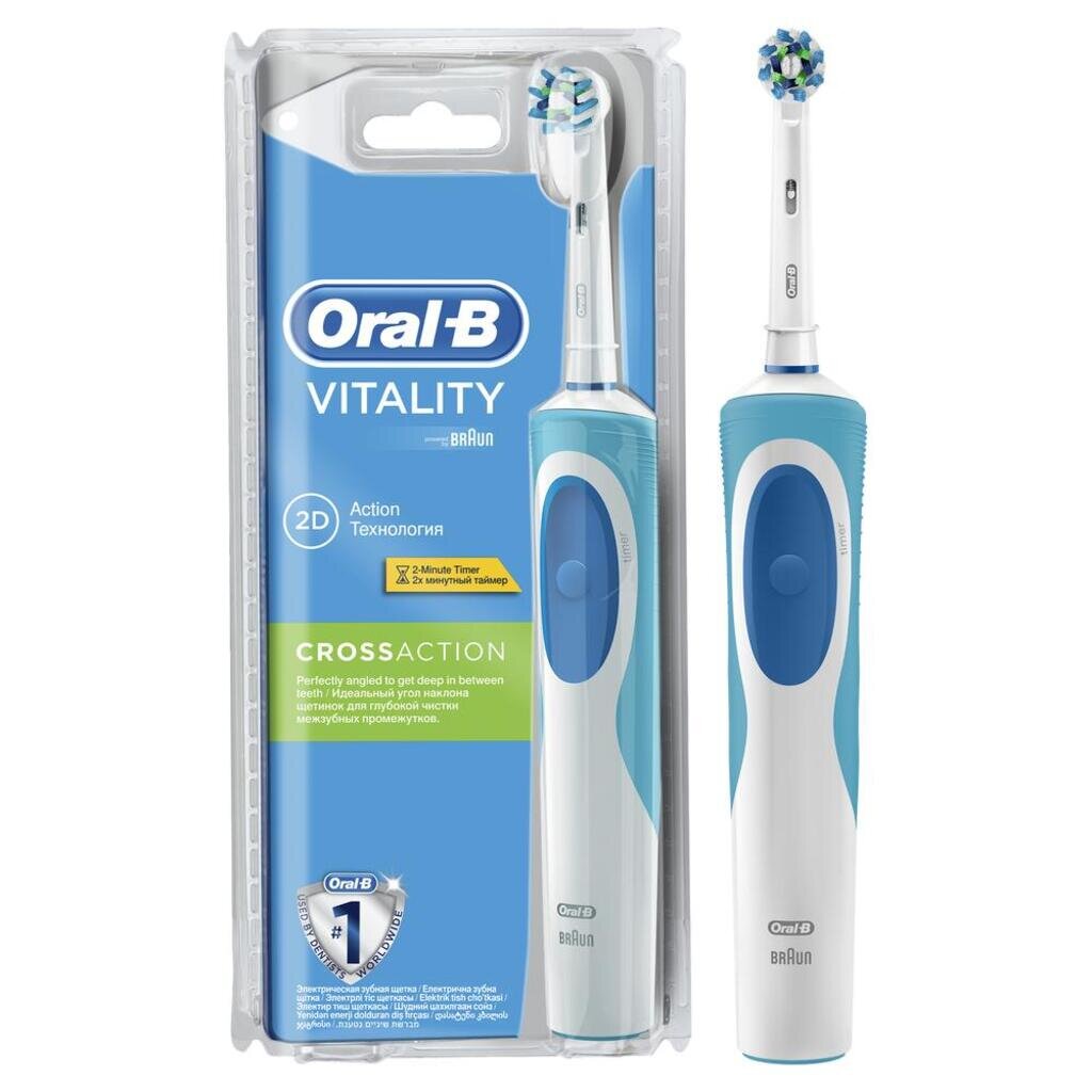 Зубная щетка Oral-B Vitality Cross Action (Орал-Би Перекрестное действие) – идеальное прочищение ваших зубов и пространств между ними она совершает 7600 возвратно-вращательных движений в минуту.