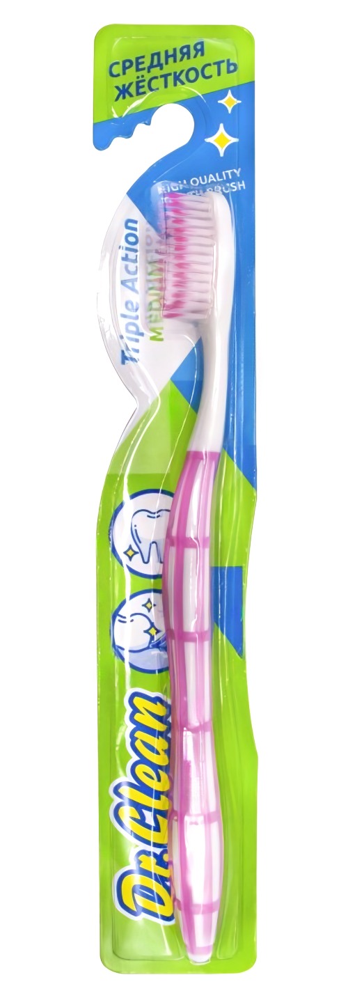 Зубная щетка Dr. Clean (Др.Клин ) "Triple action"(Тройное действие) медиум изготовлена в соответствии с международным сертификатом качества и с применением нейлонового волокна не ломается и долго сохраняет форму.