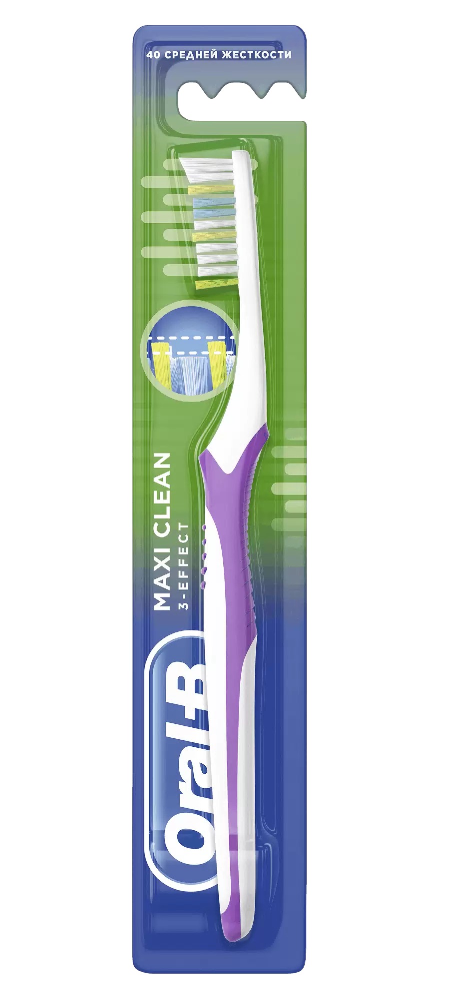 Зубная щётка Oral-B 3 Effect Maxi Clean Vision (Эффект Макси Чистый Зрение) 40 средней жёсткости - эффективно чистит полость рта,проникая в труднодоступные места.
