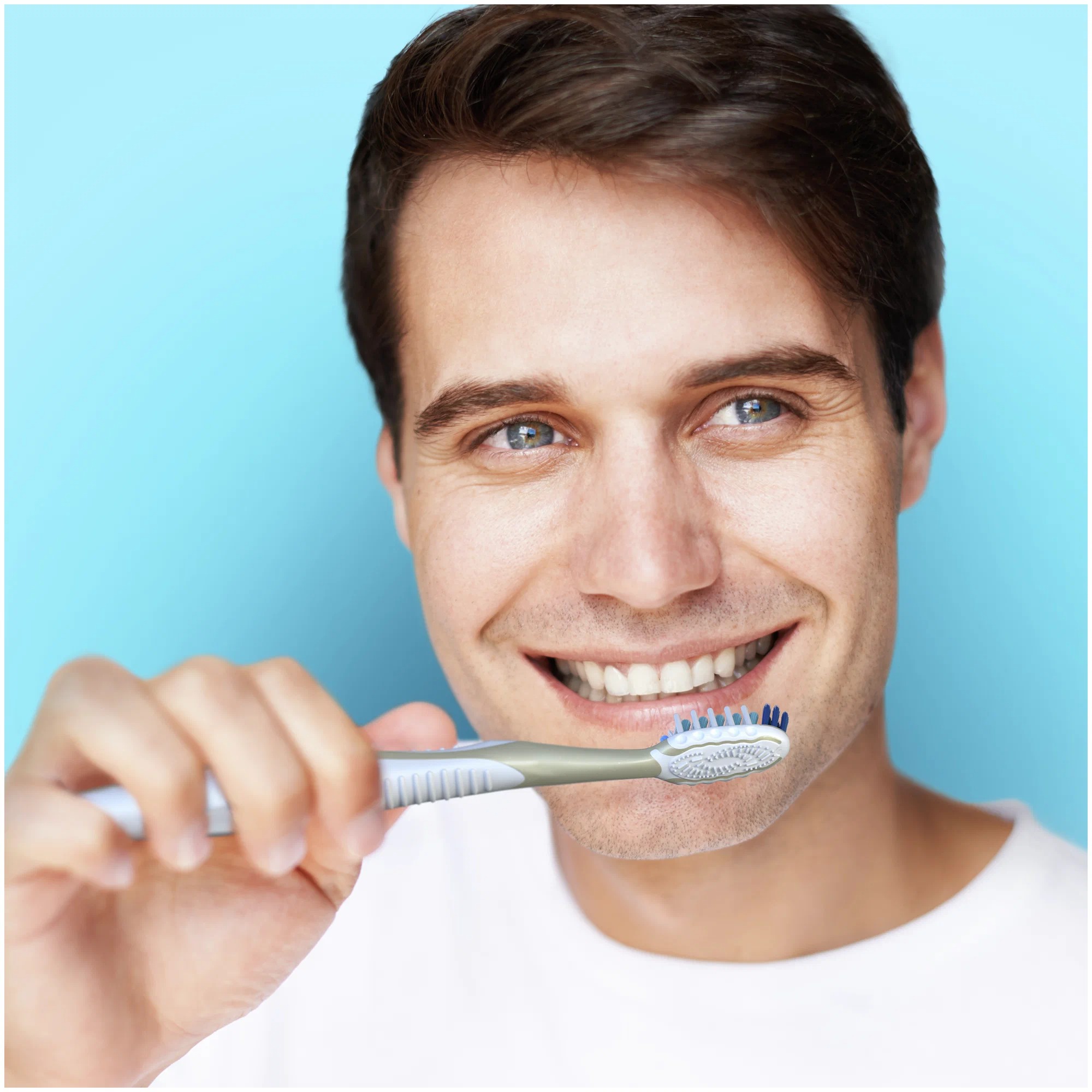 Идеальный угол наклона щетинок для превосходной чистки по сравнению с обычной зубной щеткой.